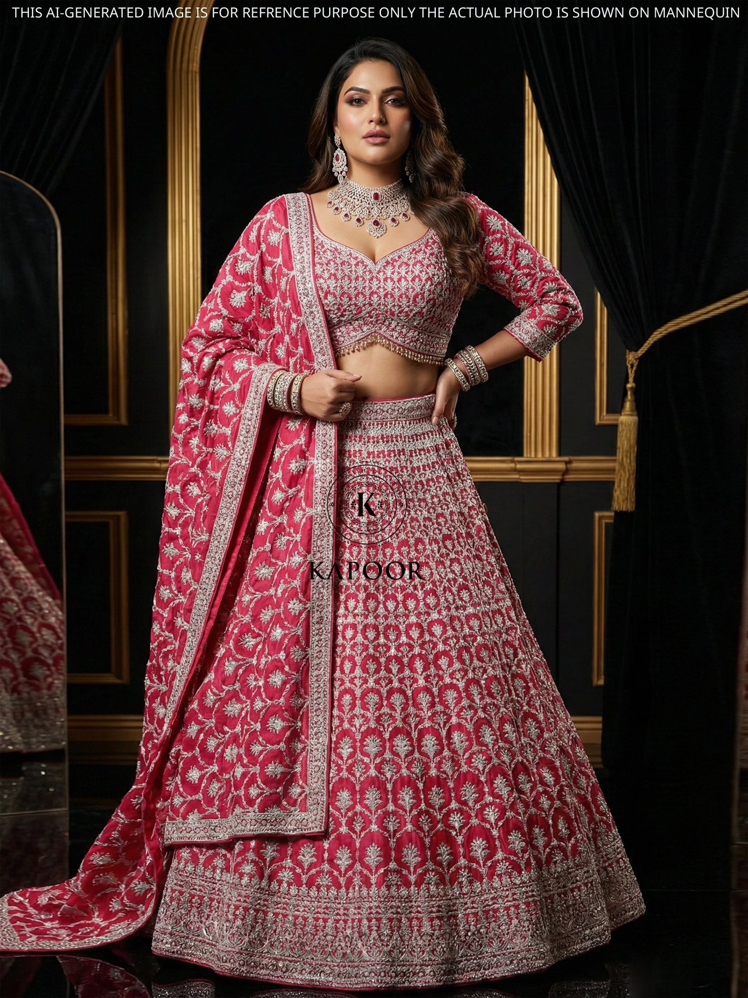 Explore the wide range of selection on Bridal lehengas, Wedding lehengas with dupatta, and Party wear lehengas which would enlighten every moment. Each piece exemplifies beauty in stitches and elegant fabrics. Whether you are searching for a Festival special lehenga , an Engagement lehenga for the bride or themed Reception lehenga with dupatta, our collection provides the perfect blend of timeless glamour and contemporary chic. Shop now and transform your moments into everlasting memories!