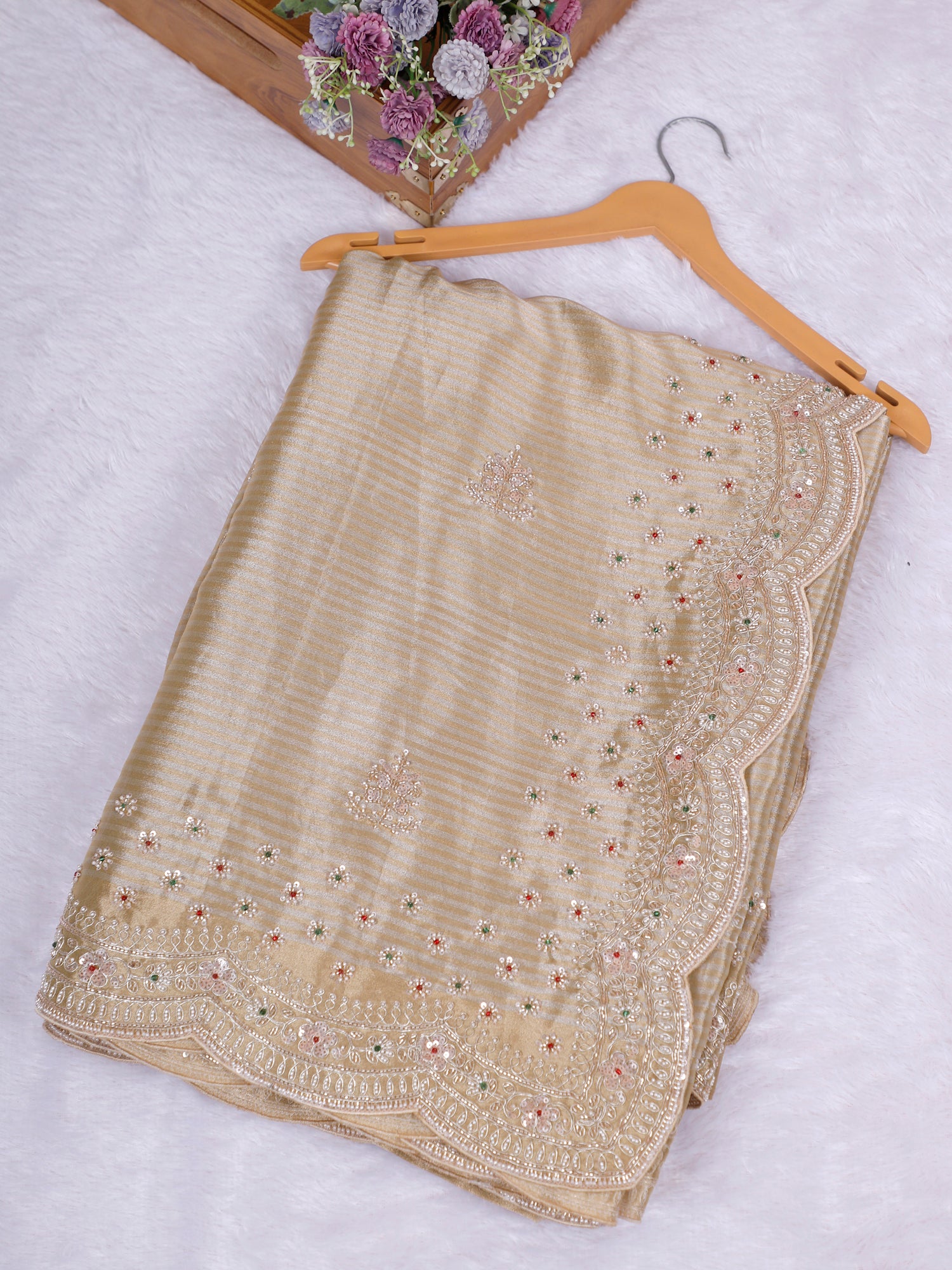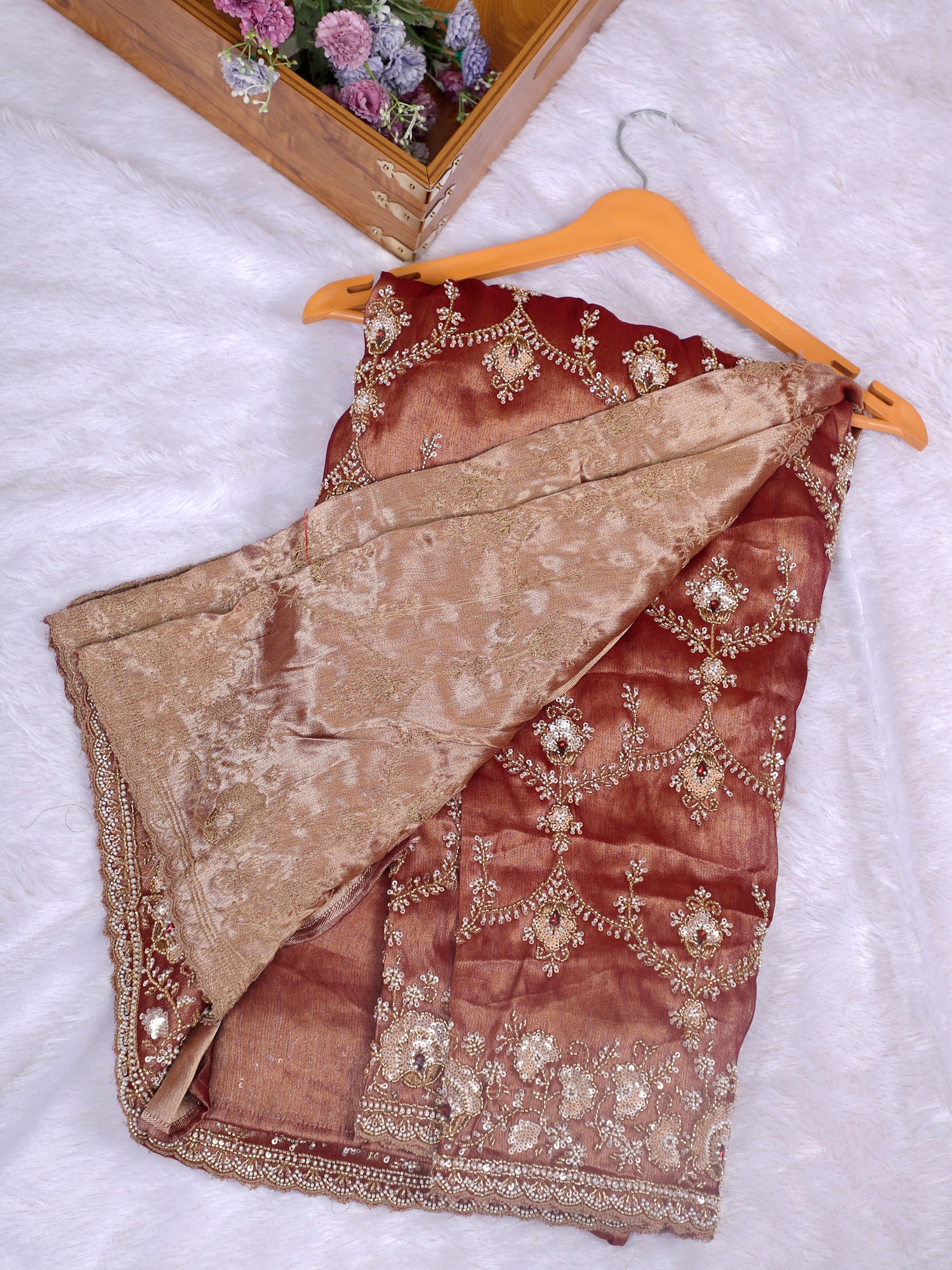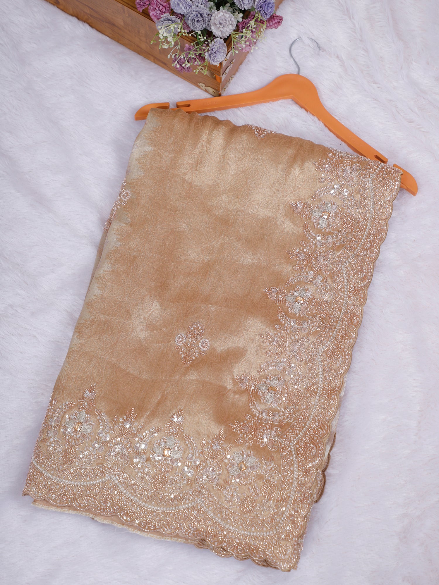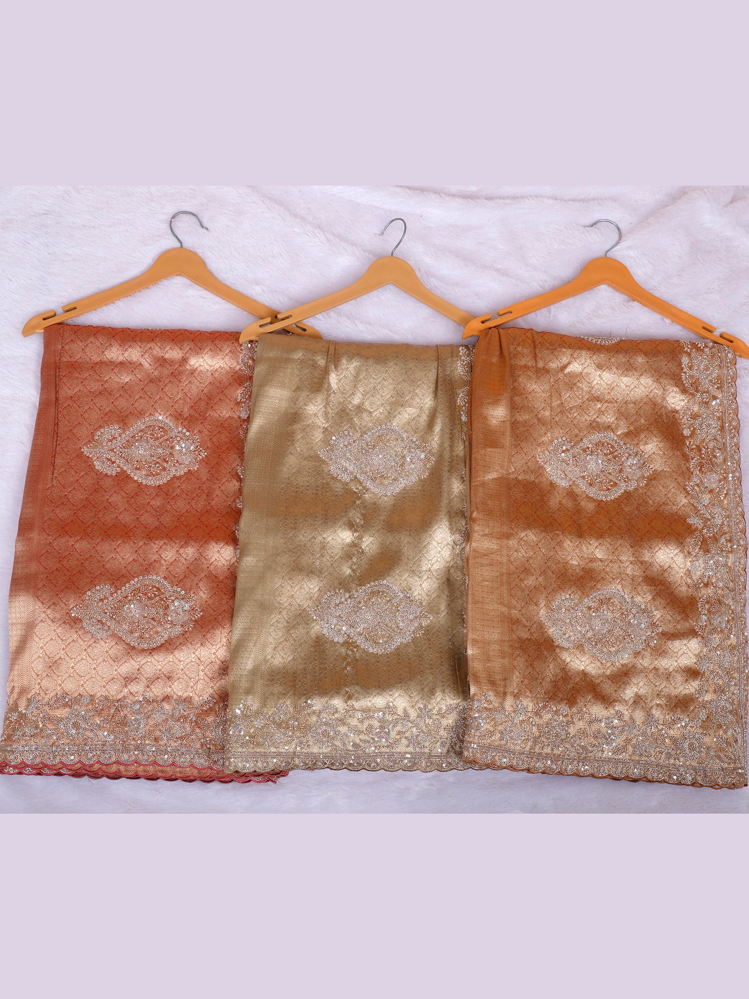 Designer bridal sarees are more appropriate for cocktail celebrations due to their bold nature. They also incorporate heavier fabrics coupled with detailed embroidery, stonework, or sequined embellishments. Sarees for parties are surely attention grabers whether they are stonework, or zari work style.