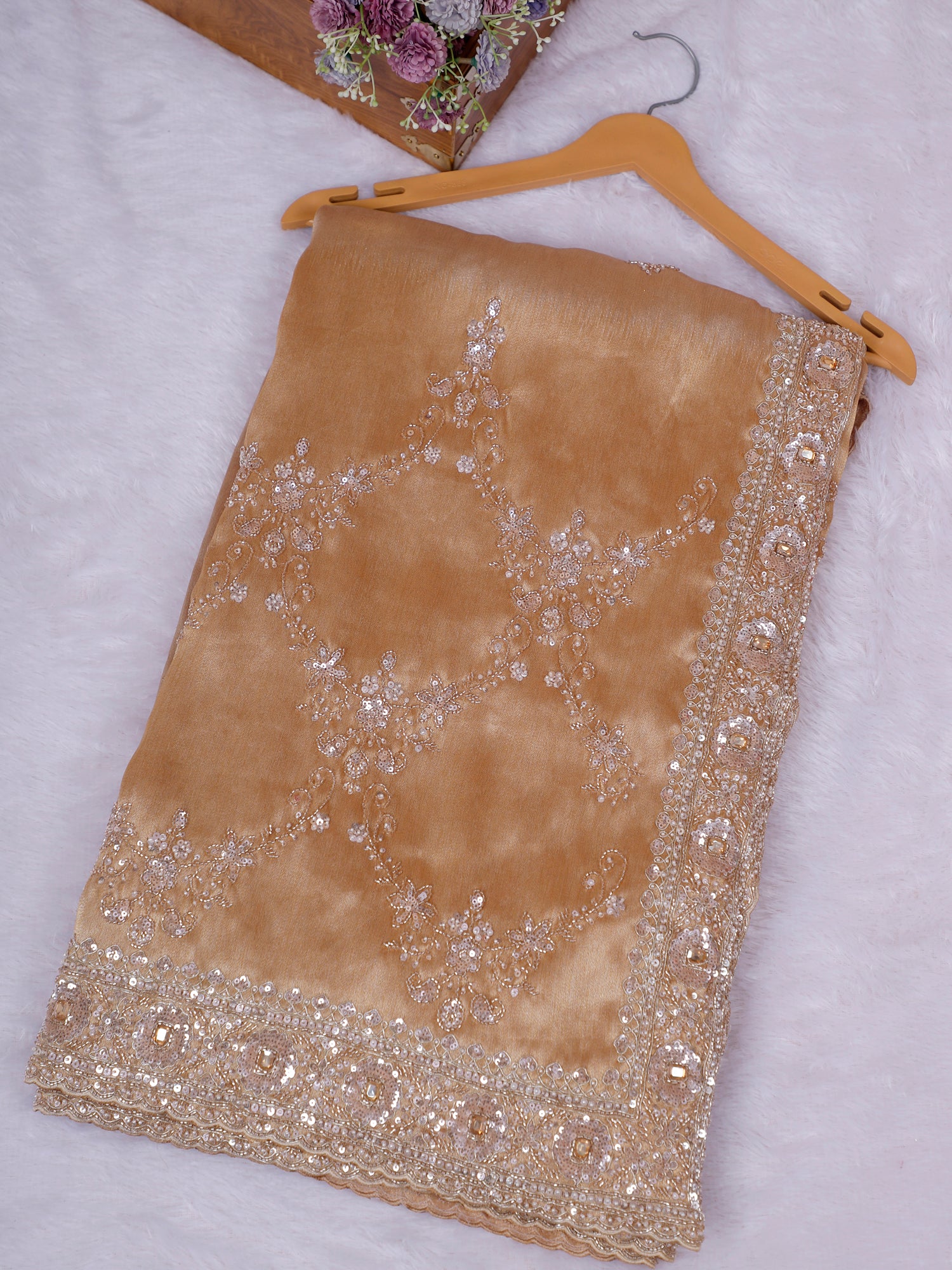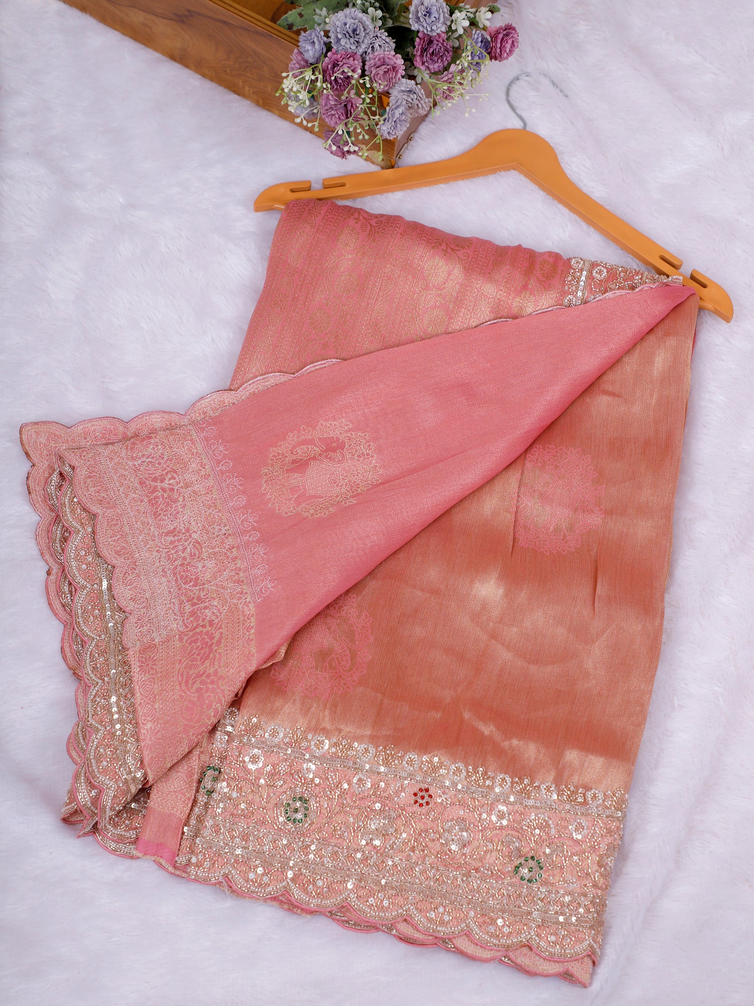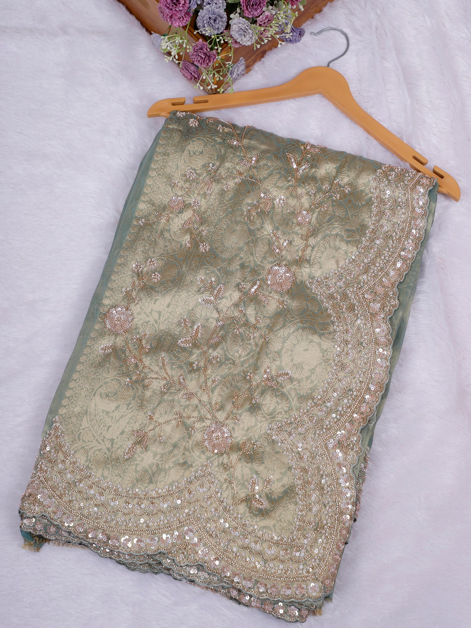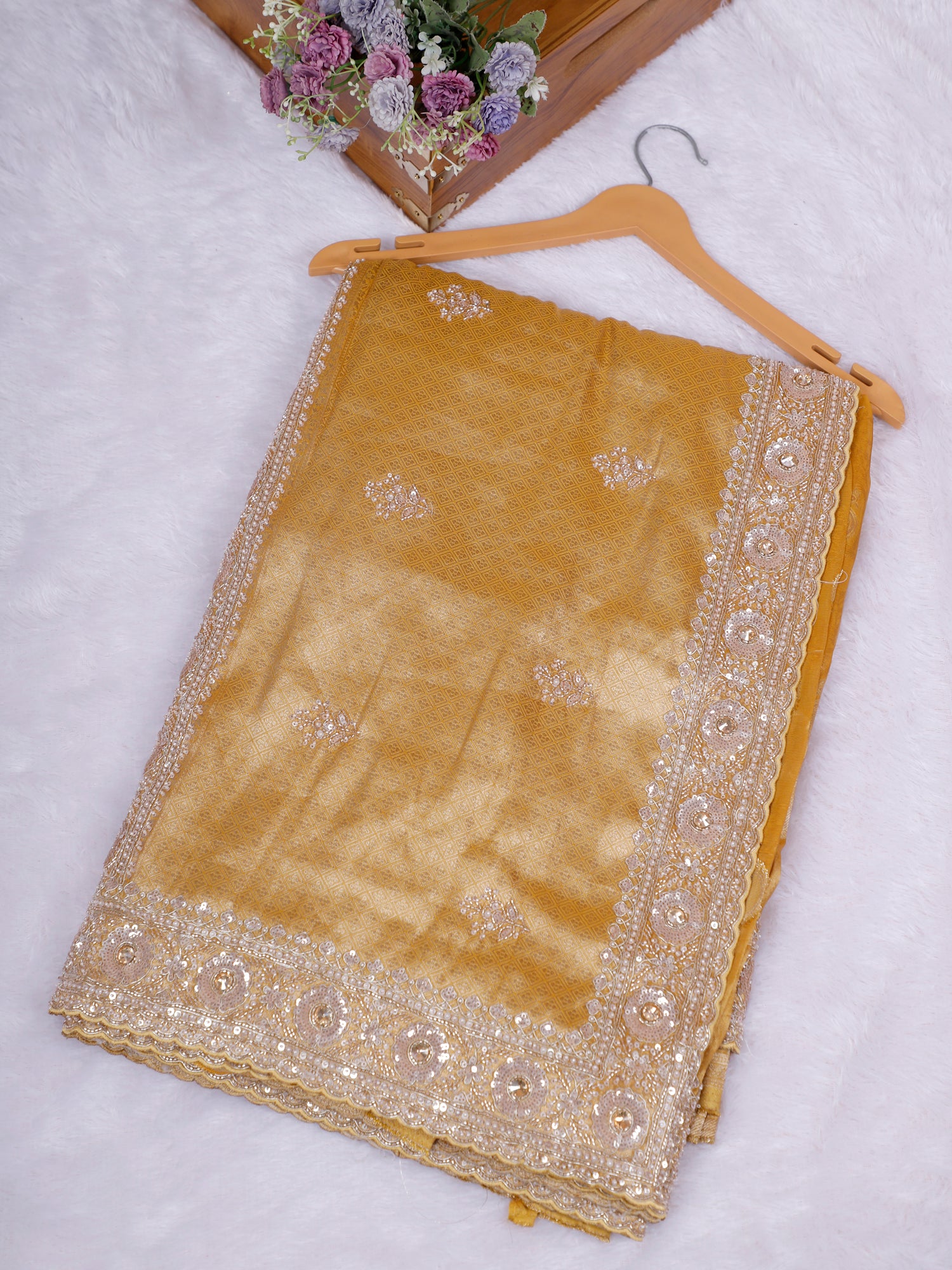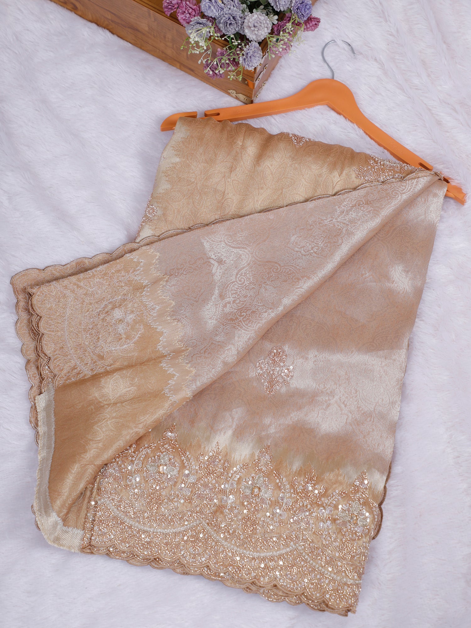 Designer bridal sarees are more appropriate for cocktail celebrations due to their bold nature. They also incorporate heavier fabrics coupled with detailed embroidery, stonework, or sequined embellishments. Sarees for parties are surely attention grabers whether they are stonework, or zari work style.