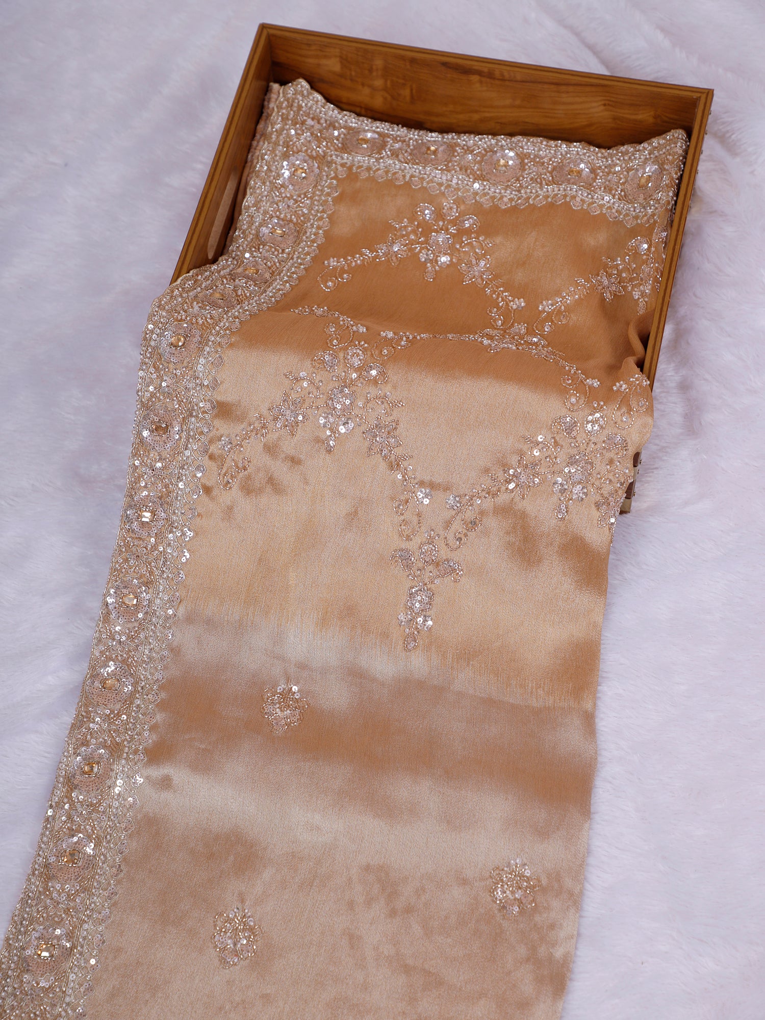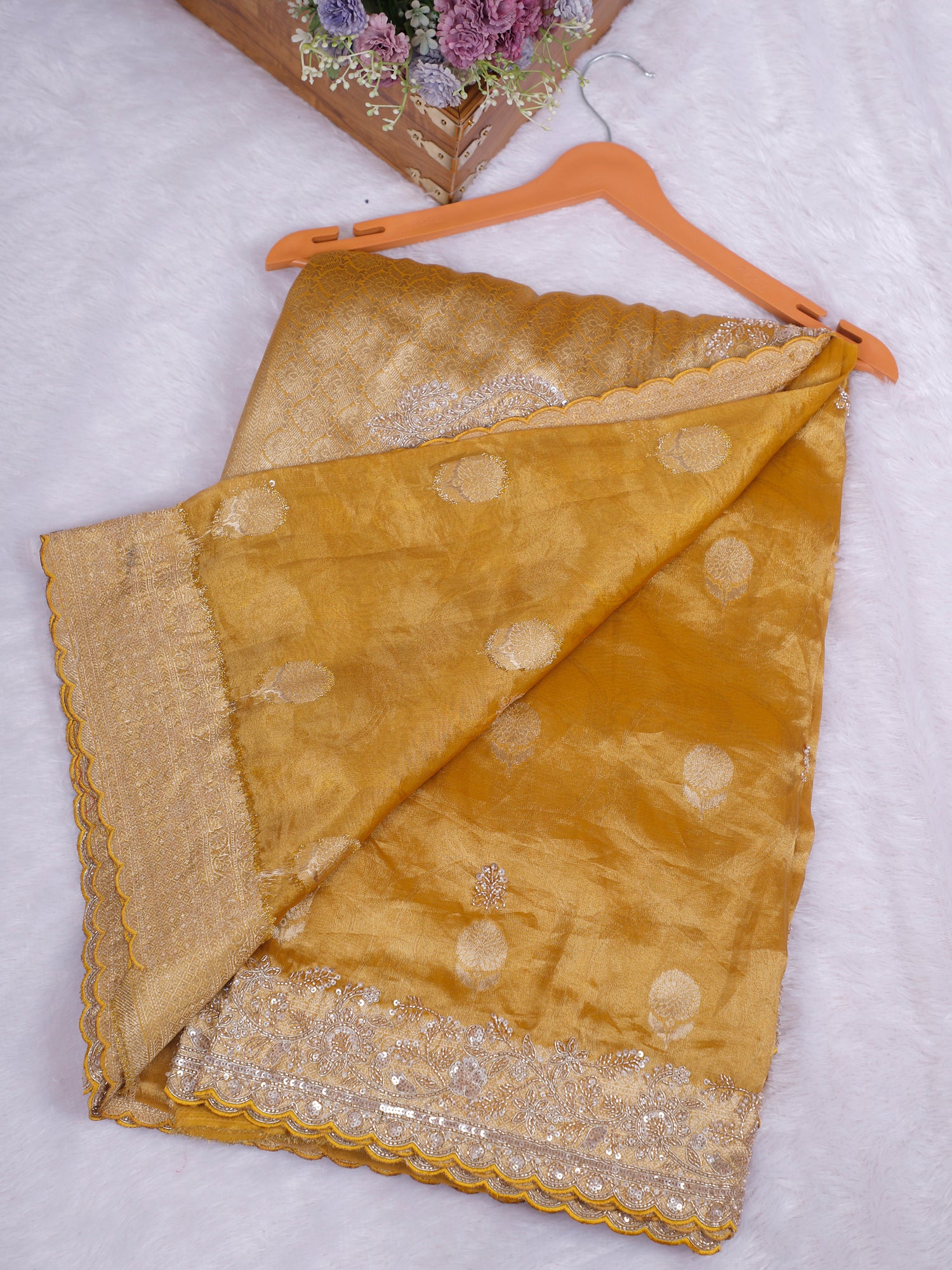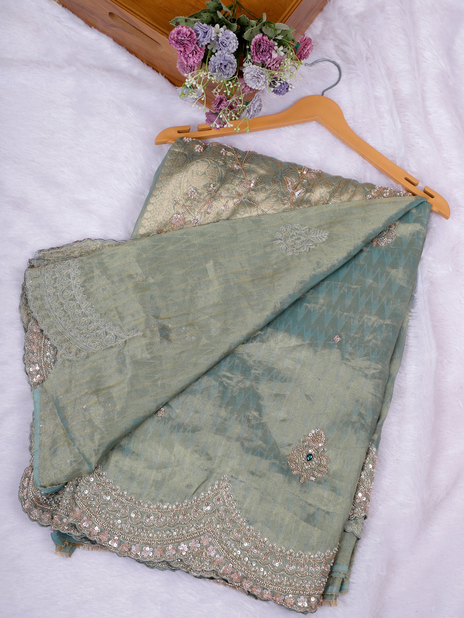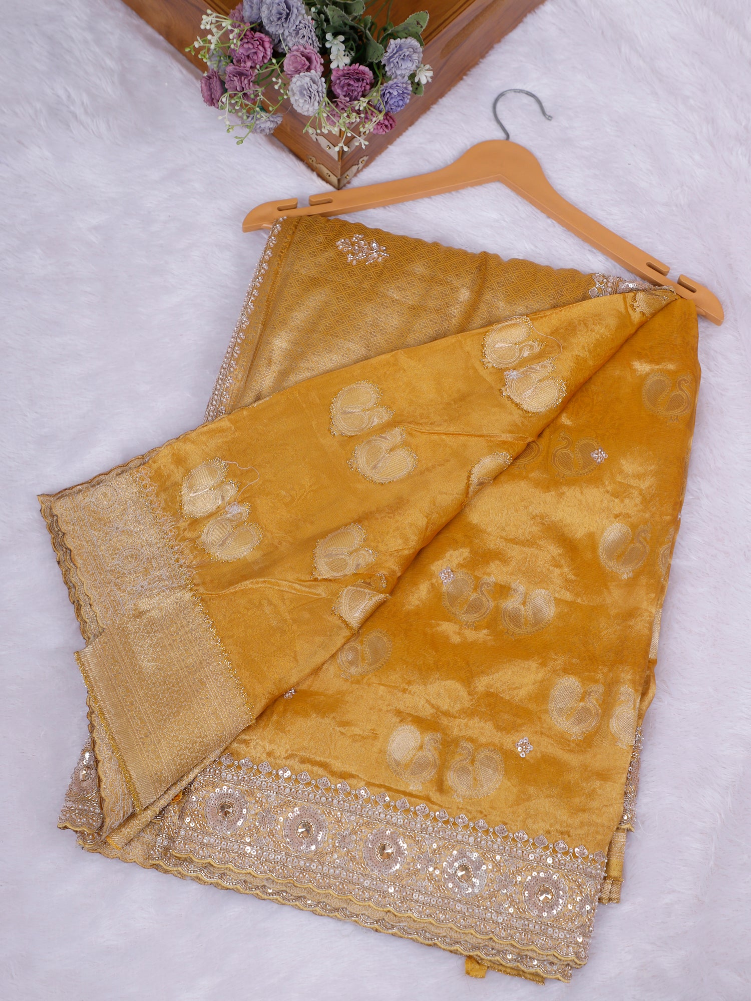 Designer bridal sarees are more appropriate for cocktail celebrations due to their bold nature. They also incorporate heavier fabrics coupled with detailed embroidery, stonework, or sequined embellishments. Sarees for parties are surely attention grabers whether they are stonework, or zari work style.