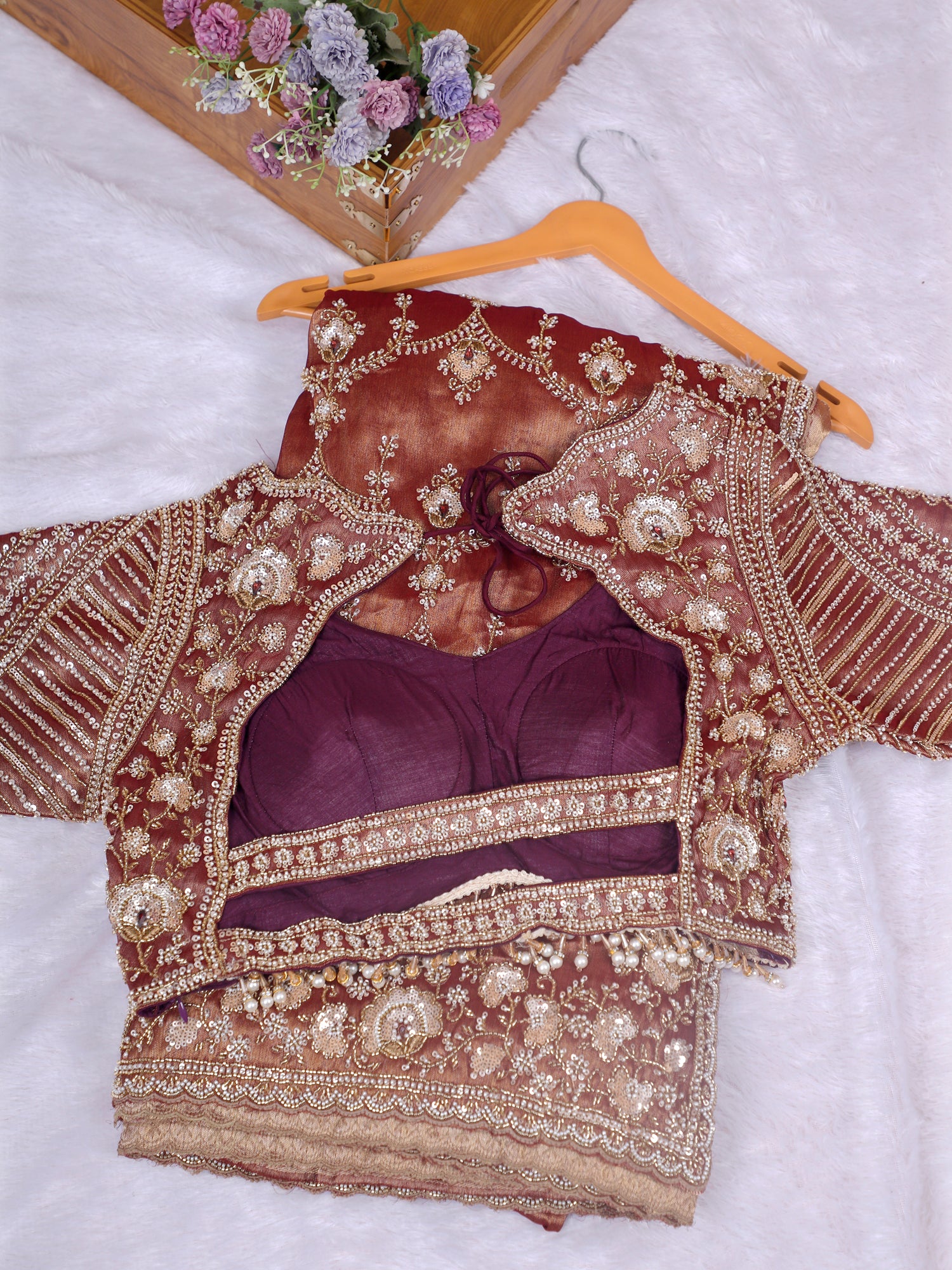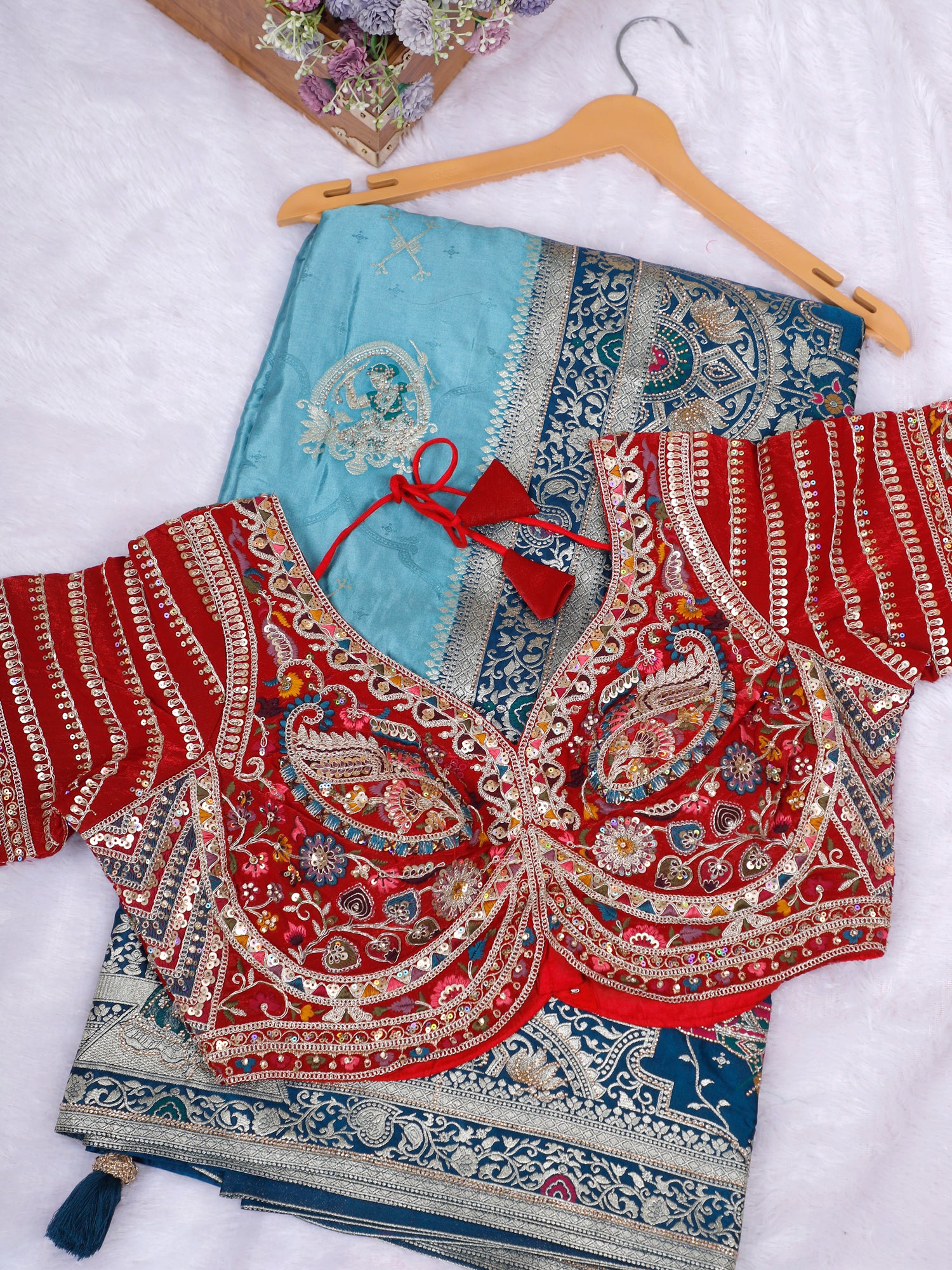 A statement blouse is capable of changing the perception of the party wear saree. The perfect finishing touch is a gold worked bridal saree or a heavy worked party saree blouse, giving all together different look and feel to the drape.