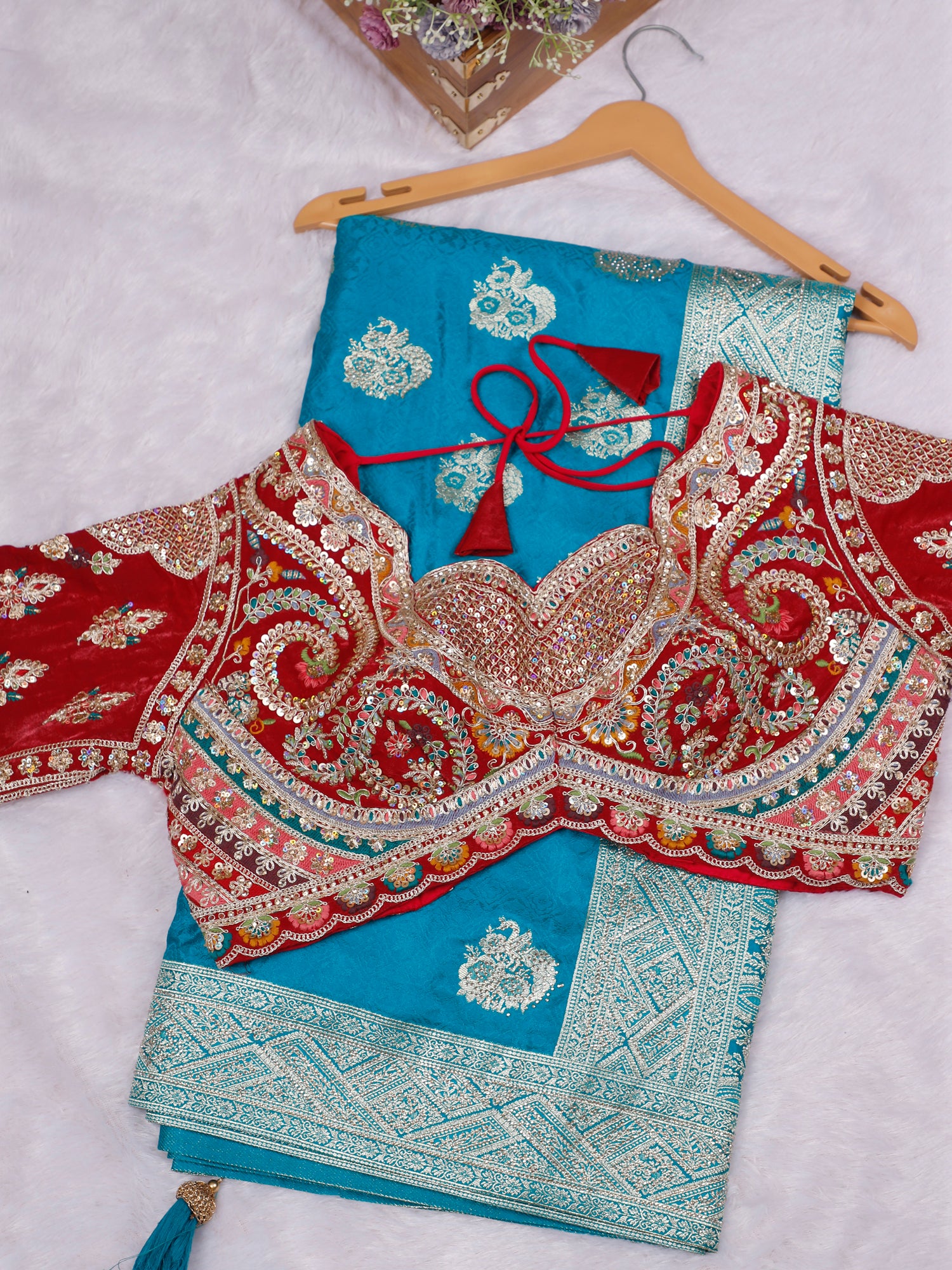 A statement blouse is capable of changing the perception of the party wear saree. The perfect finishing touch is a gold worked bridal saree or a heavy worked party saree blouse, giving all together different look and feel to the drape.