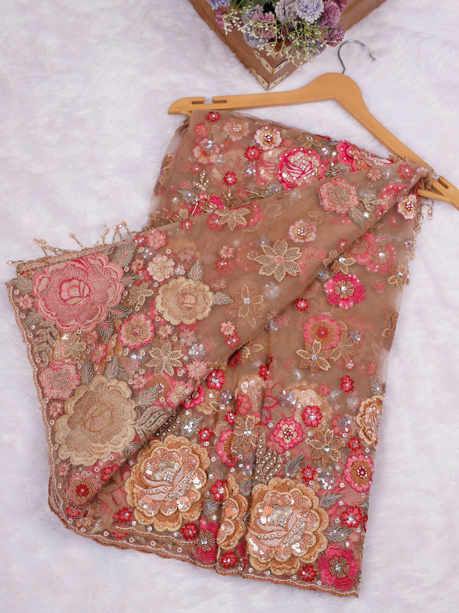 The net also works well as a fabric choice for party wear sarees as it makes the garment lighter and allows for better movement. This fabric is very ideal for summer weddings or other cocktail events where light breezy is preferred. Light party wear sarees are also stylish and comfortable which makes them suitable for the summer evening cocktail parties.