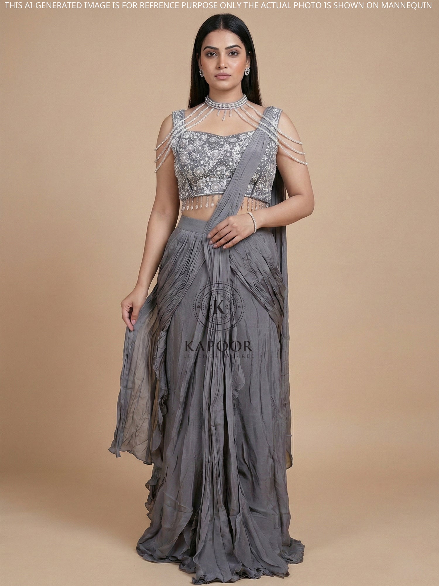 When it comes to styling your party wear saree, different events call for different types of looks. For a more elegant party wear saree suited for formal cocktails, consider traditional fabrics like silk or satin that reflect sophistication. On the other hand, if you’re attending a glamorous party wear saree event, you can experiment with vibrant colors, sequins, or contemporary designer saree designs.