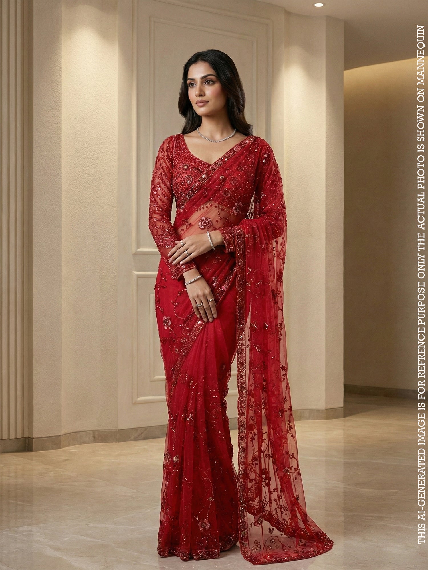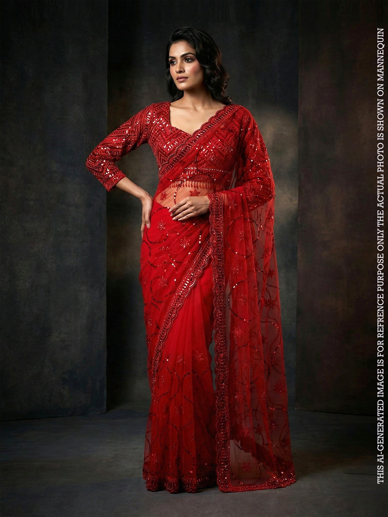 Royal Red Net Saree with Sequin & Stone