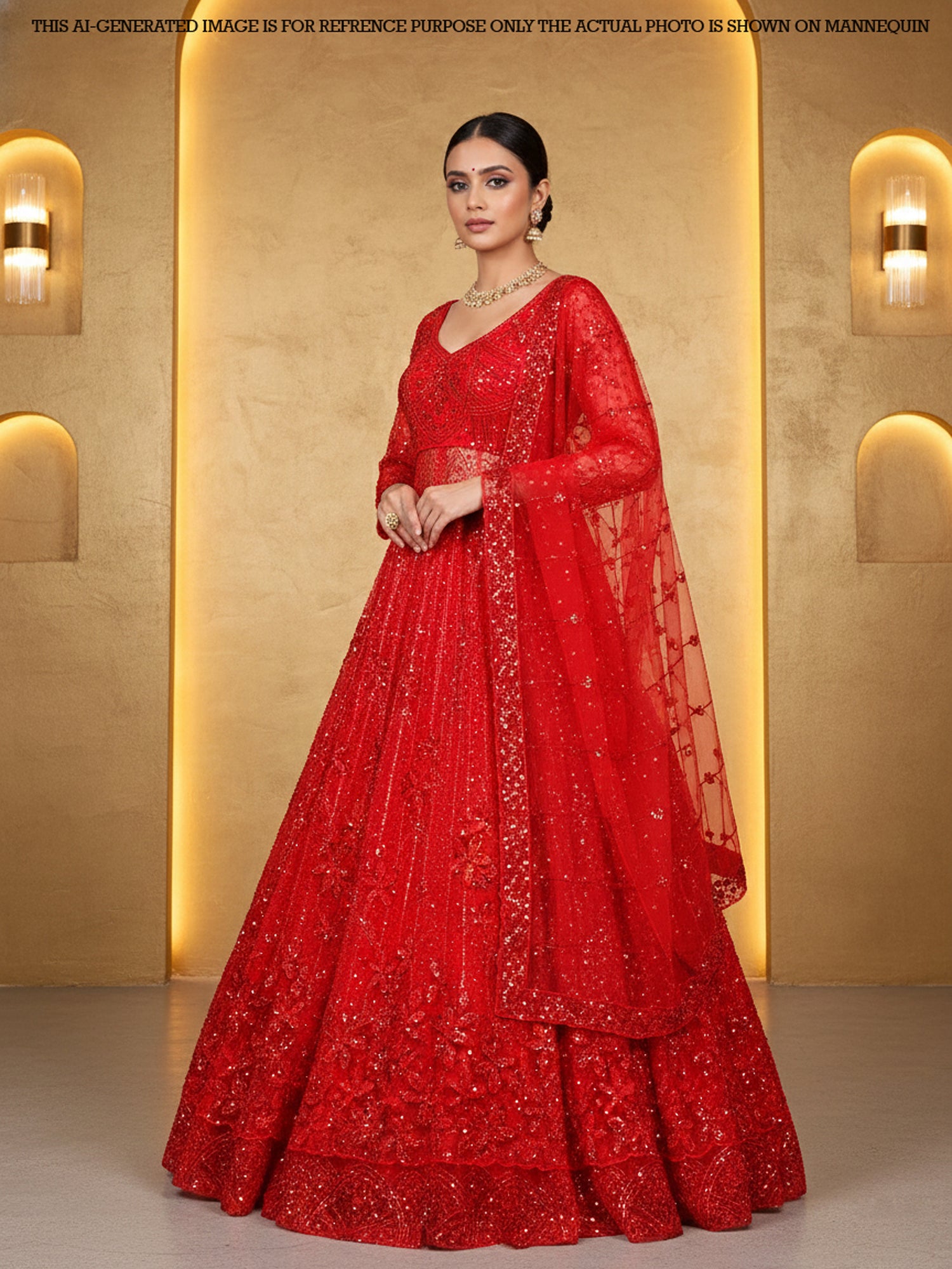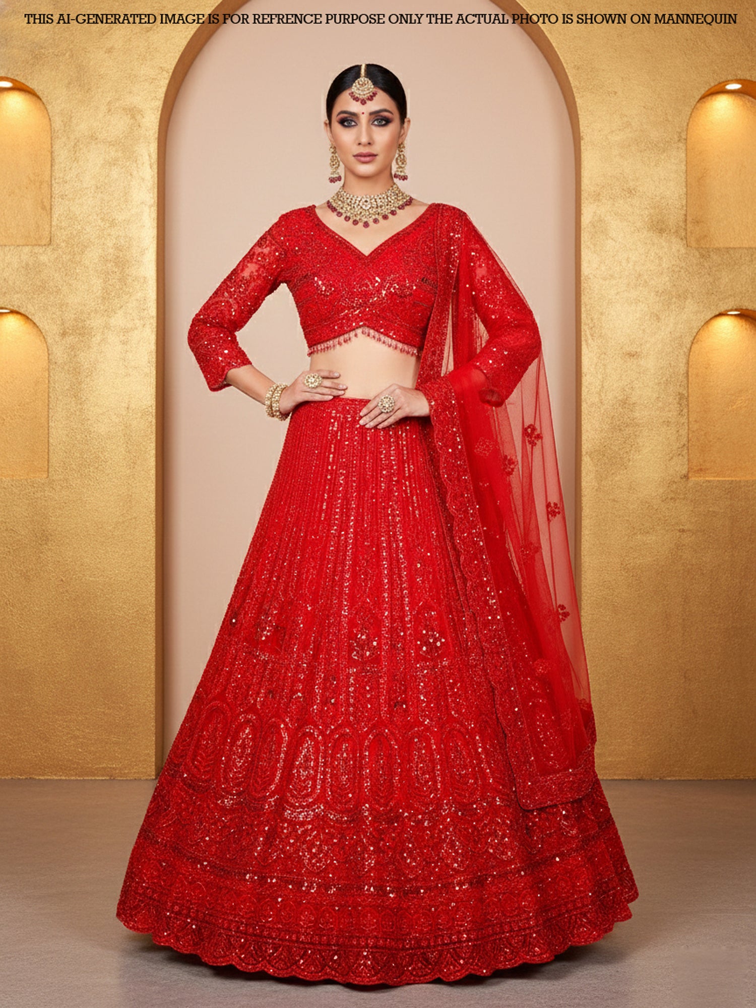 Red Empire Sequence Beads Lehenga