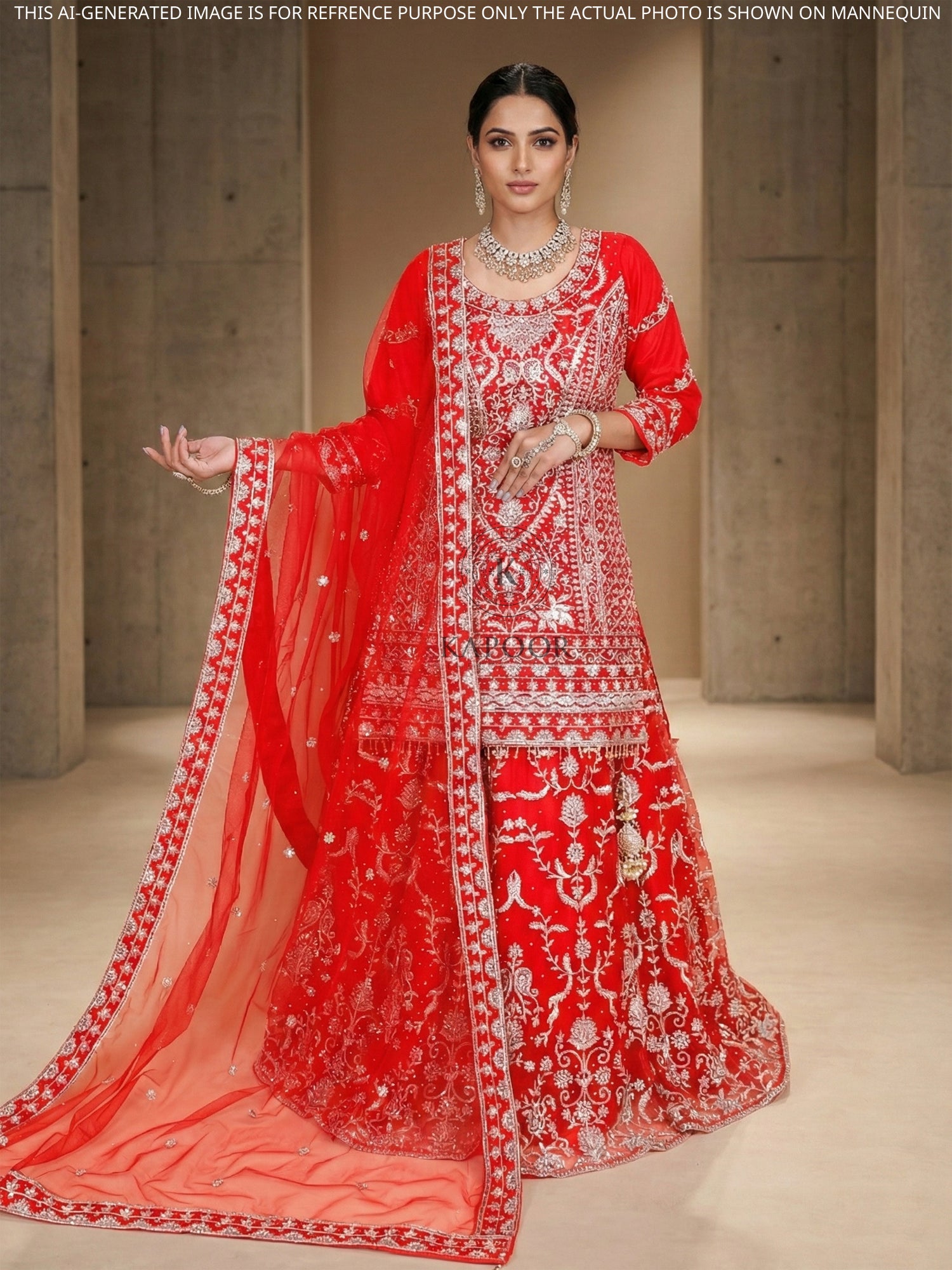 Red Georgette Indo-Western