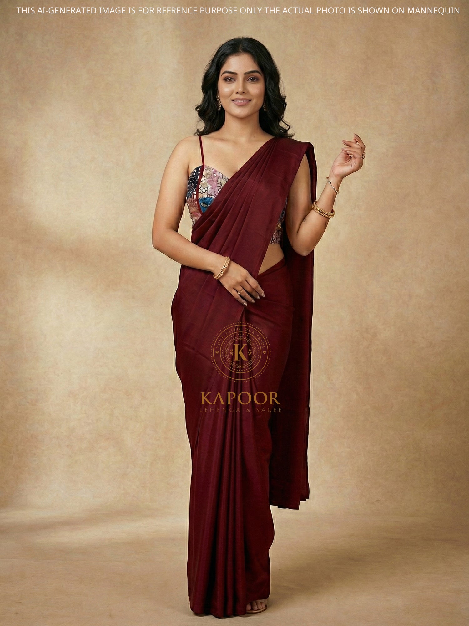 Maroon Chinon Saree Drape with Digital Print