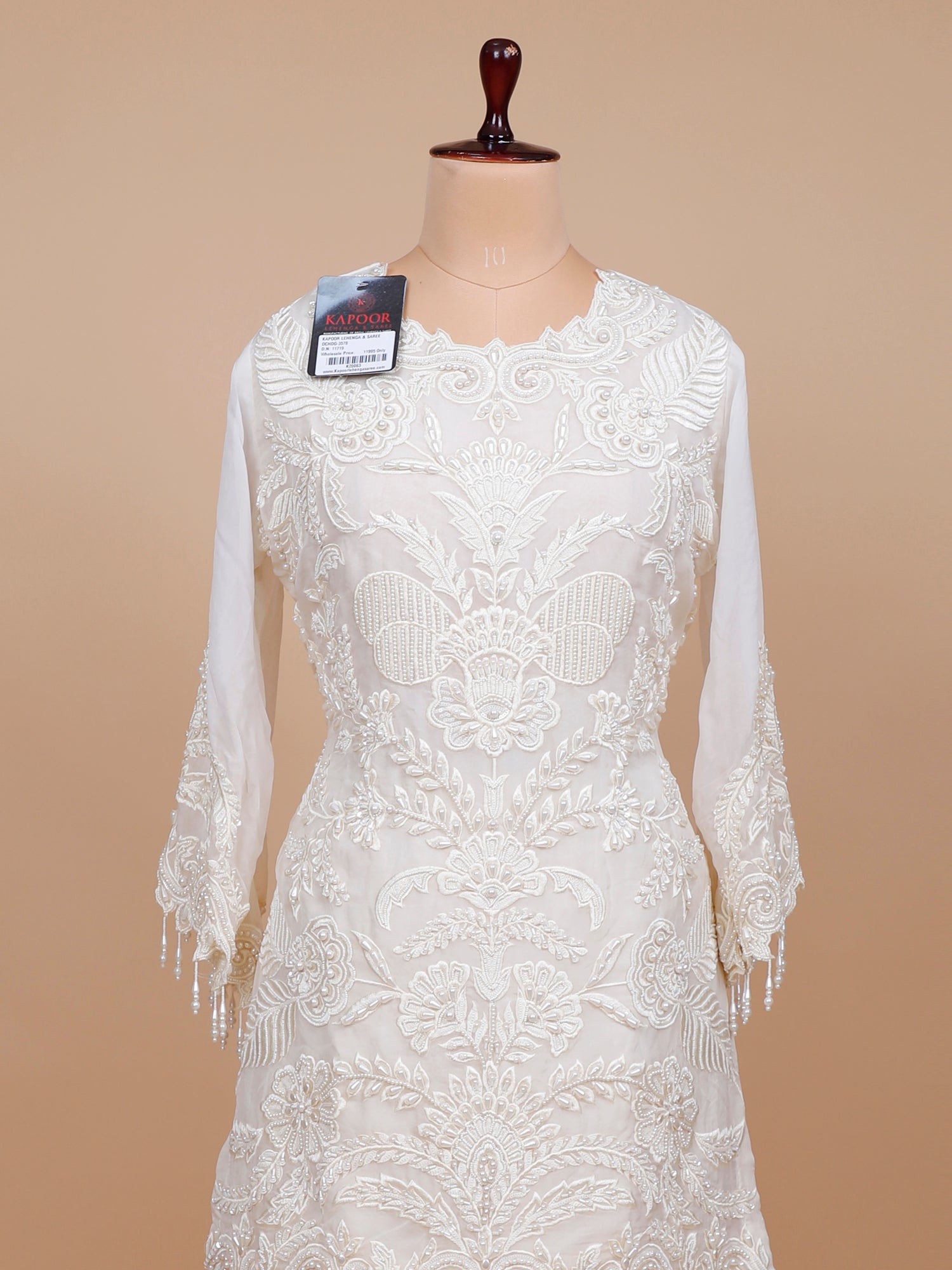 Designer White Gown Inspired By Bollywood With Net Fabric And Stone Handwork