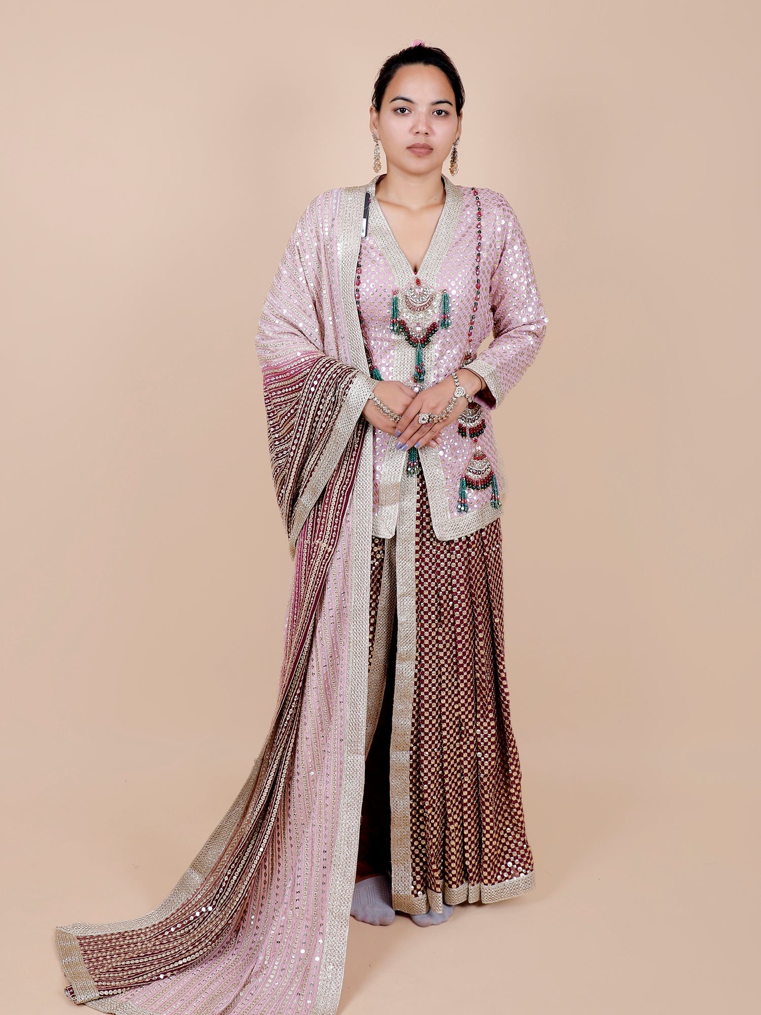 Our ensembles are not just outfits; they are heirlooms of craftsmanship. Each piece is designed with rich fabrics, intricate embroidery, and thoughtful detailing that brings your story to life.